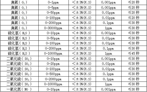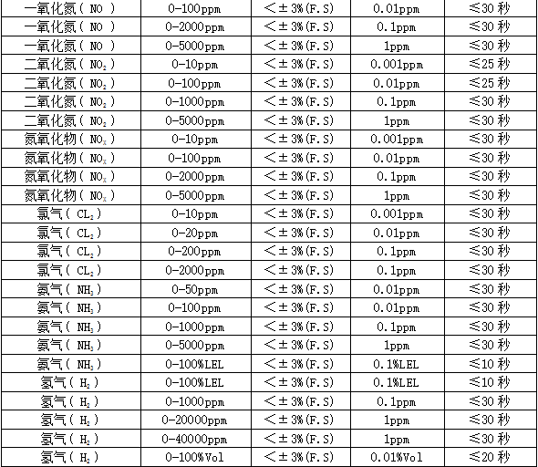 分 辨 率:0.01ppm或0.001ppm(0~10 ppm);0.01ppm(0~100 ppm),0.1ppm(0~1000 ppm),1ppm(0~1000 ppm以上),0.01毫克/升(0~200%毫克/升)、0.1%LEL、0.01%、0.001%Vol。