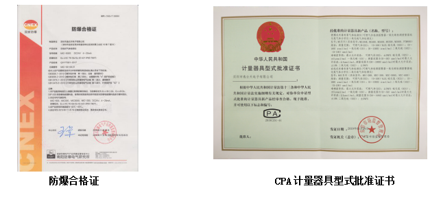 ·符合最新國標(biāo)并取得CPA計量器具型式批準(zhǔn)證書、防爆認(rèn)證等資質(zhì)