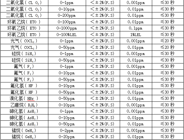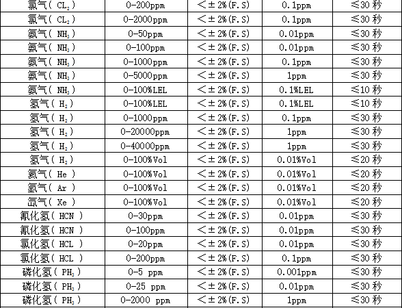 分 辨 率:0.01ppm或0.001ppm(0~10 ppm);0.01ppm(0~100 ppm),0.1ppm(0~1000 ppm),1ppm(0~1000 ppm以上),0.01毫克/升(0~200%毫克/升)、0.1%LEL、0.01%、0.001%Vol。
