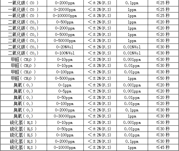 分 辨 率:0.01ppm或0.001ppm(0~10 ppm);0.01ppm(0~100 ppm),0.1ppm(0~1000 ppm),1ppm(0~1000 ppm以上),0.01毫克/升(0~200%毫克/升)、0.1%LEL、0.01%、0.001%Vol。